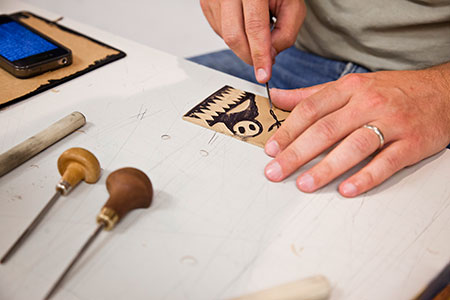 Relief printmaking is a subtractive process where one carves away from a “block,” and the areas that remain in relief are then inked to create a new image. This hands-on studio course focuses on contemporary relief printmaking techniques and encourages creative experimentation. With a focus on linoleum block printing, you will learn to carve printable matrices using multiple materials. Exploration beyond traditional methods is encouraged through processes such as vegetable carving, layered printing, and inventive mark-making strategies. Through demonstrations and guided assignments, you will develop confidence in carving, inking, and printing while building a solid technical foundation. Experiment with different papers, inks, and formats, learning how material choices influence both image and concept. Regular group critiques and discussions will provide a supportive environment for developing ideas, refining prints, and connecting processes with personal artistic direction.